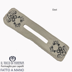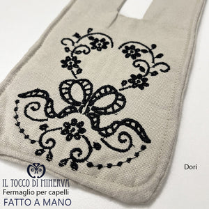 fermaglio in lino ricamato dori - fatto a mano