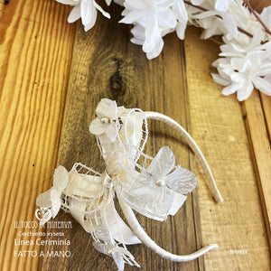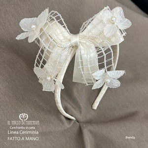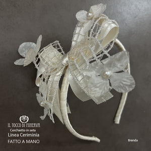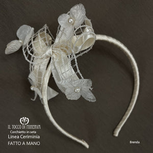 Cerchietto Linea Cerimonia prima comunione Brenda rete beige- Fatto a Mano