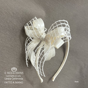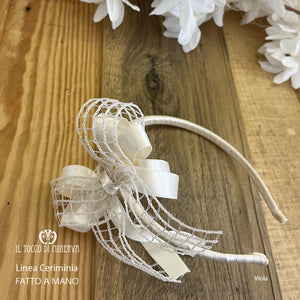 Cerchietto Linea Cerimonia prima comunione Viola rete beige- Fatto a Mano